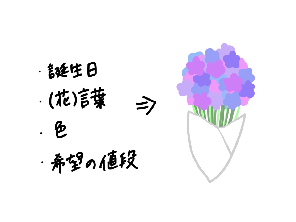 花言葉や色、予算などに合った花束が提案され、そのまま注文ができるというサービス。