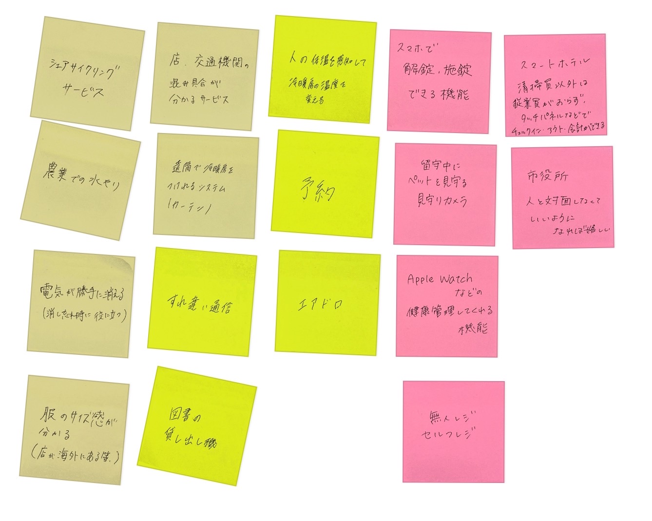 3.IoT(遠隔操作)で何ができそうか?グループワークした内容(ポストイット画像)
