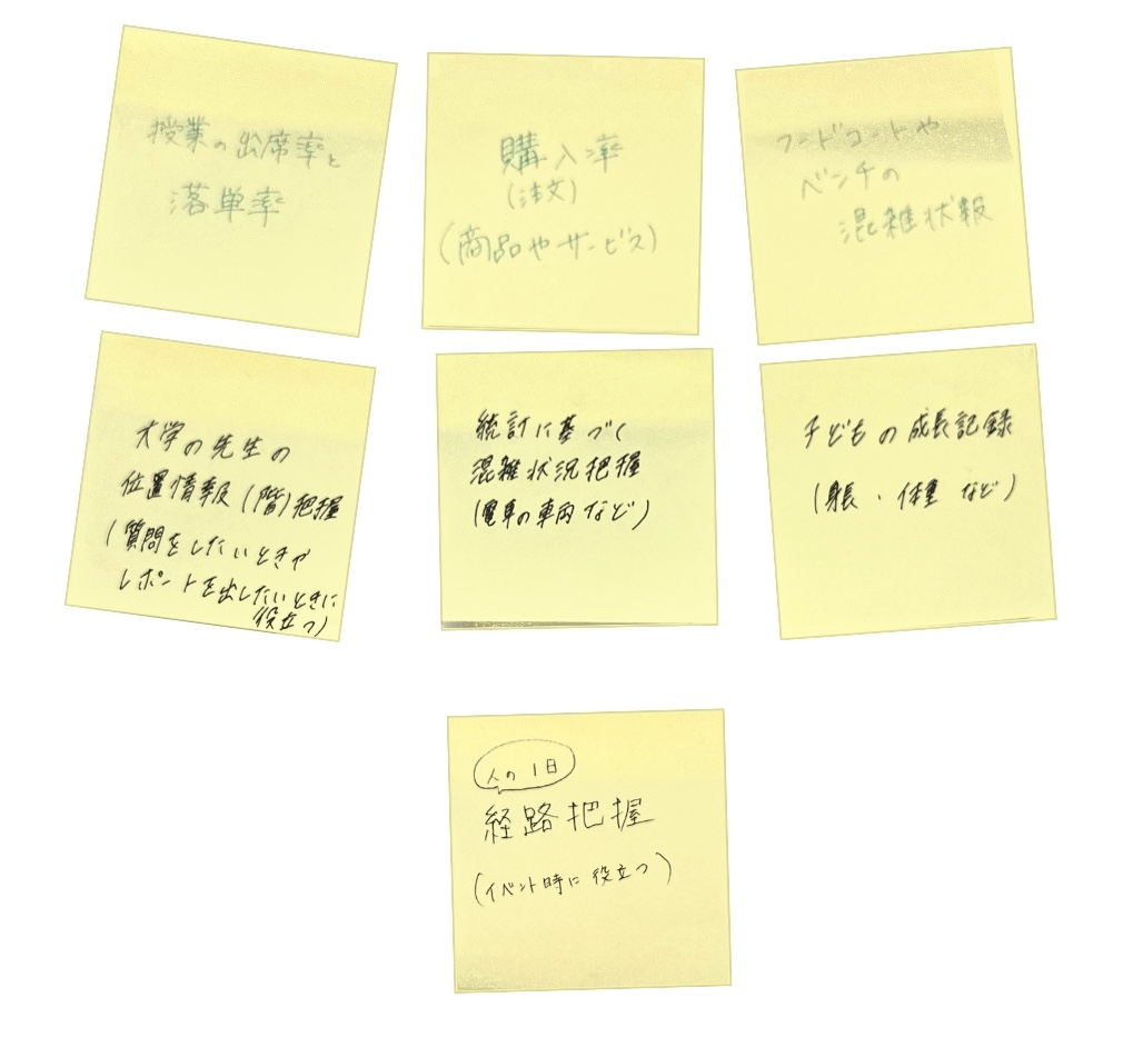 ・人の1日の経路がデータ保存できると、テーマパークやイベントの時に空いている経路やよく混雑する経路などがわかり、
